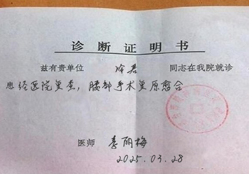 冷君_李丽梅_经医院复查,腰部手术...